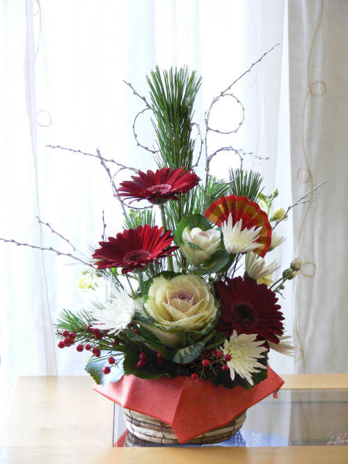 今年のお正月アレンジは「紅白」の色合わせにしてみました。