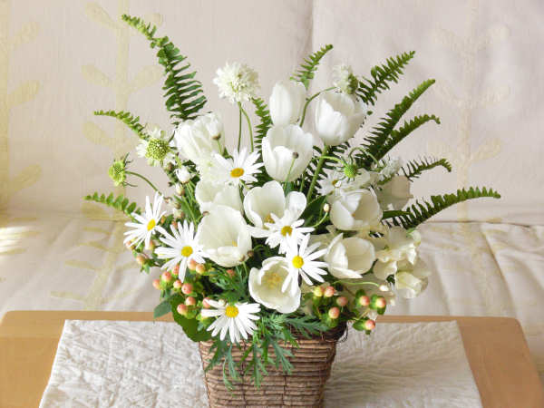 生花の場合は同じ花材を揃えることは難しく、その旨お伝えした上で、