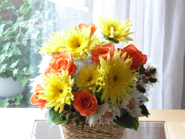 退職された先生へのお祝いのお花。お元気で、小柄で明るい女性とお聞きして・・・