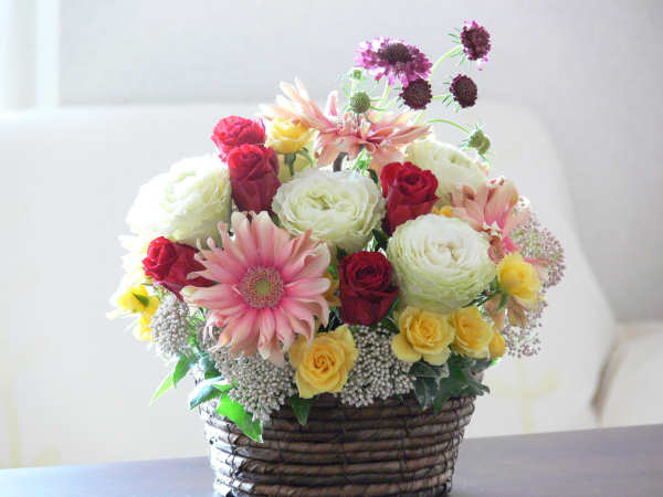 キレイなバラが手に入ったので、バラたっぷりアレンジにしました。