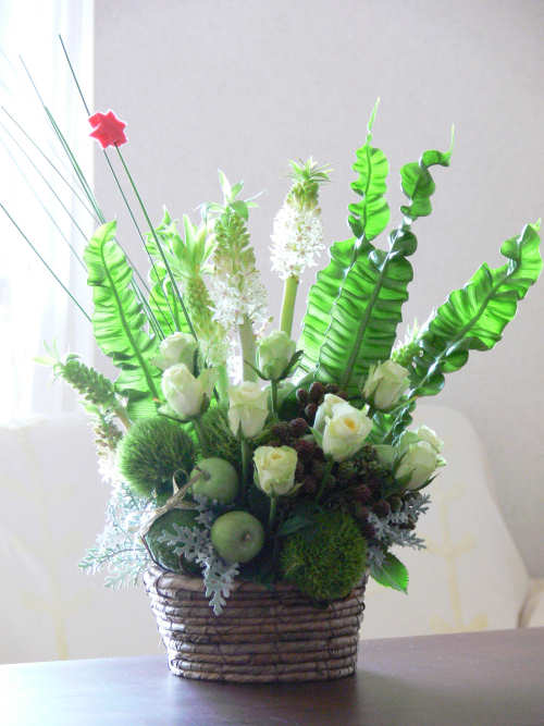 そして、グリーンや実ものでおもしろいアレンジをご希望でした。