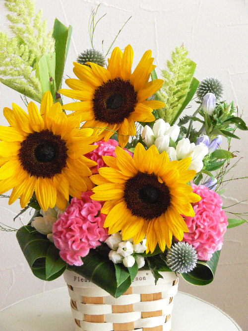 でもただ今入院中とのことで、元気の出るようなアレンジを。