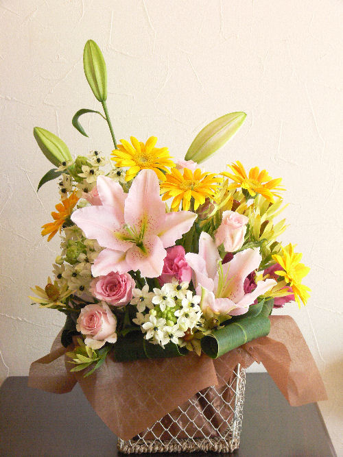 病室ではないので、ほのかな香りのユリも入れました。