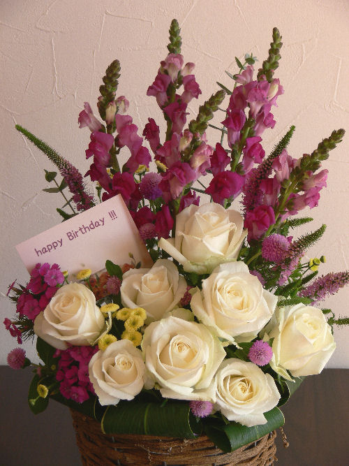 個展を開かれるお母さまへお誕生日のお祝いと兼ねたお花を。
