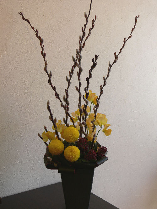 和モダンで縦長のアレンジをとのご指定です。