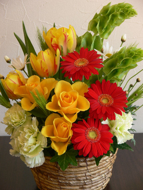 退院後もリハビリをがんばれるように元気の出るアレンジをとのご希望でした。