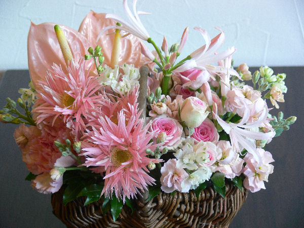 手付きのバスケットにラブリーで上品なアレンジをとのご希望でした。