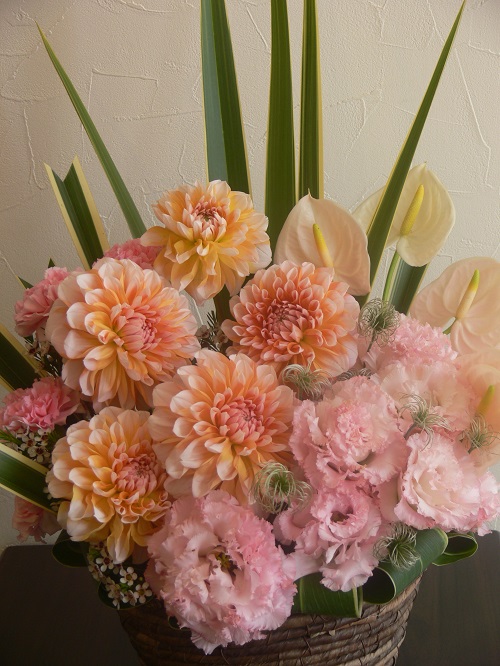 ピンク系でかわいいお供え花を。。。
