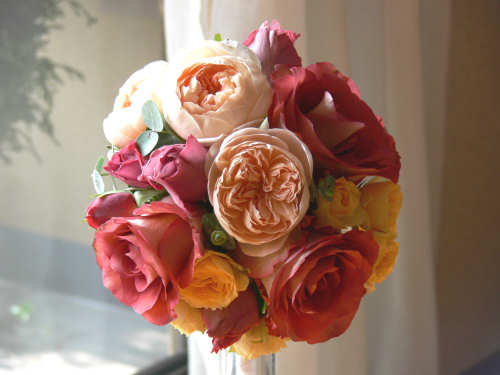 バラの香りにユーカリの香りもプラスされて幸せ感いっぱいの秋色ブーケになりました。