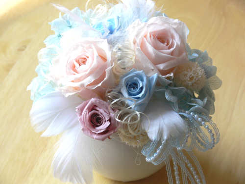 ピンクとブルーのコラボで・・・というご希望でお作りしました。