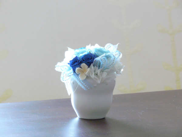 仕事の合間にホッとできるように、ぷっくりしたやわらかい感じの器にアレンジしました。