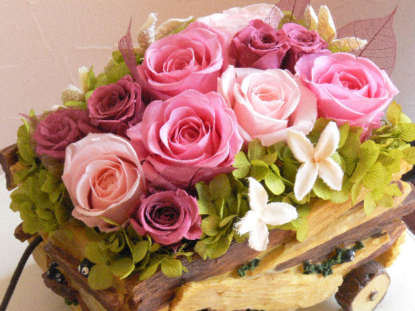 そして、トトロがどっち向きにも引っ張れるようにどちらからでもお花たっぷりにアレンジしました。