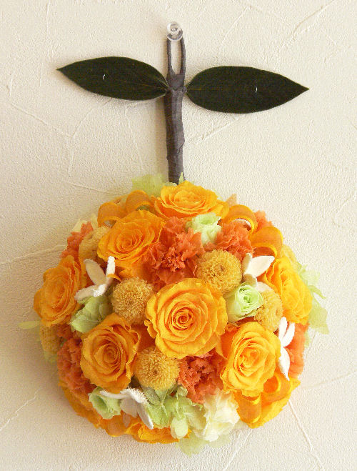 「ゆず」という名前のお店のお祝いなので、ユズのイメージのアレンジを。