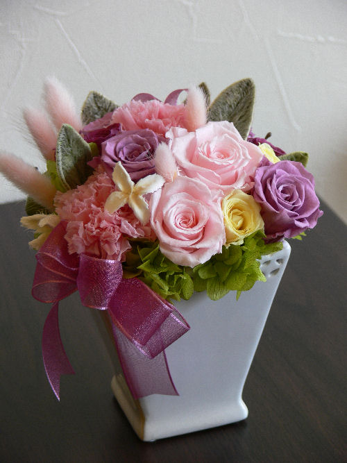 ピンク系で、なおかつ寒い時期なので暖かそうなアレンジを。。。