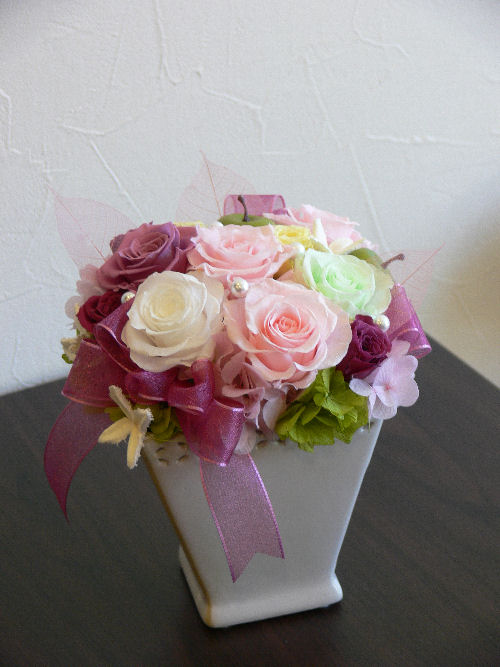 ご結婚お祝いなのでブライダルの雰囲気も出るようにしてみました。