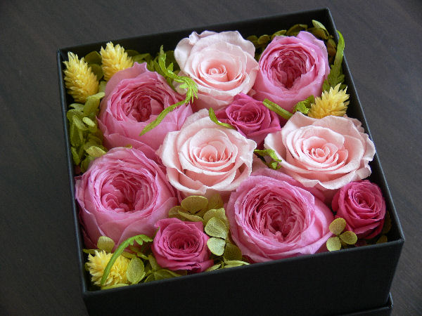 開けた時のサプライズ感と持ち運びを考えてボックスアレンジをご注文いただきました。