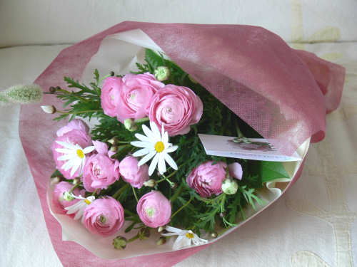 美人でやさしい方へ・・・このきれいなラナンキュラスを束ねました。