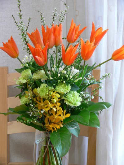 花束を抱えるとオレンジのいい香りがするチューリップ・・・バレリーナ