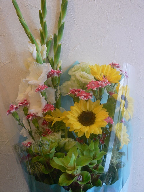 グラジオラス(グランプリ)・ヒマワリ(ビンセントポメロ)・トルコキキョウ